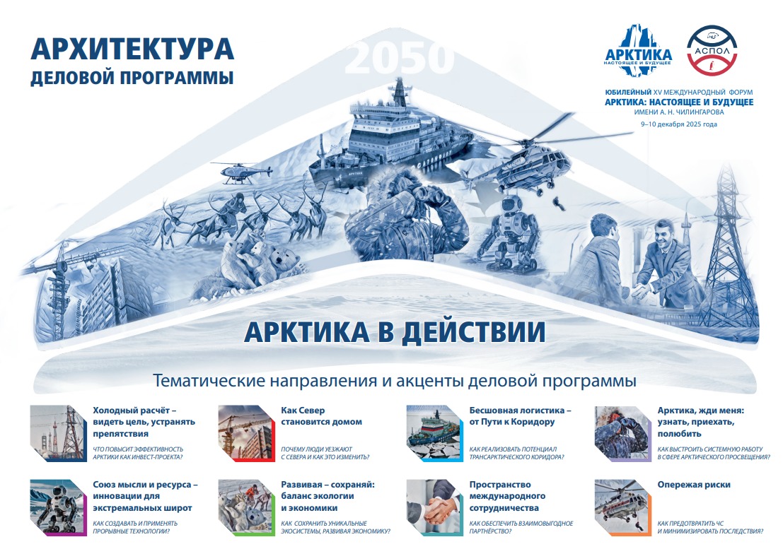Главная » Новости » Определена архитектура Юбилейного форума «Арктика: настоящее и будущее» им. А.Н. Чилингарова НОВОСТИ18.09.2025Определена архитектура Юбилейного форума «Арктика: настоящее и будущее» им. А.Н. Чилингарова9-10 декабря 2025 года в Санкт-Петербурге более 2000 человек из Российской Федерации и других государств примут участие в Юбилейном XV Международном форуме «Арктика: настоящее и будущее» им. А.Н. Чилингарова. Форум, организатором которого выступает МОО «Ассоциация полярников», ежегодно подводит итоги арктической повестки и объединяет представителей органов власти, делового сообщества, научно-образовательных и некоммерческих организаций, СМИ для участия в определении ключевых направлений социально-экономического развития АЗРФ и формирования решений по актуальным вопросам. В 2025 году Форум пройдет под девизом «Арктика в действии», который отражает возрастающее значение Крайнего Севера как пространства интенсивной человеческой активности и масштабных задач, требующих колоссальных усилий, продуманных решений и взаимной ответственности. Деловая программа Форума ориентирована на содействие реализации национальных целей России и создана с учётом формирования конкретных решений. Её традиционно дополнит выставочная экспозиция, где участники познакомятся с проектами регионов и разработками предприятий, направленными на реализацию экономического потенциала и повышение качества жизни населения. Будет проведено более 35 сессий и «круглых столов». Запланированы торжественные мероприятия, посвященные сохранению наследия легендарного полярника, основателя Форума, первого президента Ассоциации полярников Артура Чилингарова и 15-летию работы Форума. Первое информационное сообщение Форума (скачать в PDF) Журнал «Арктика: экология и экономика» является информационным партнером Форума. | ||||
