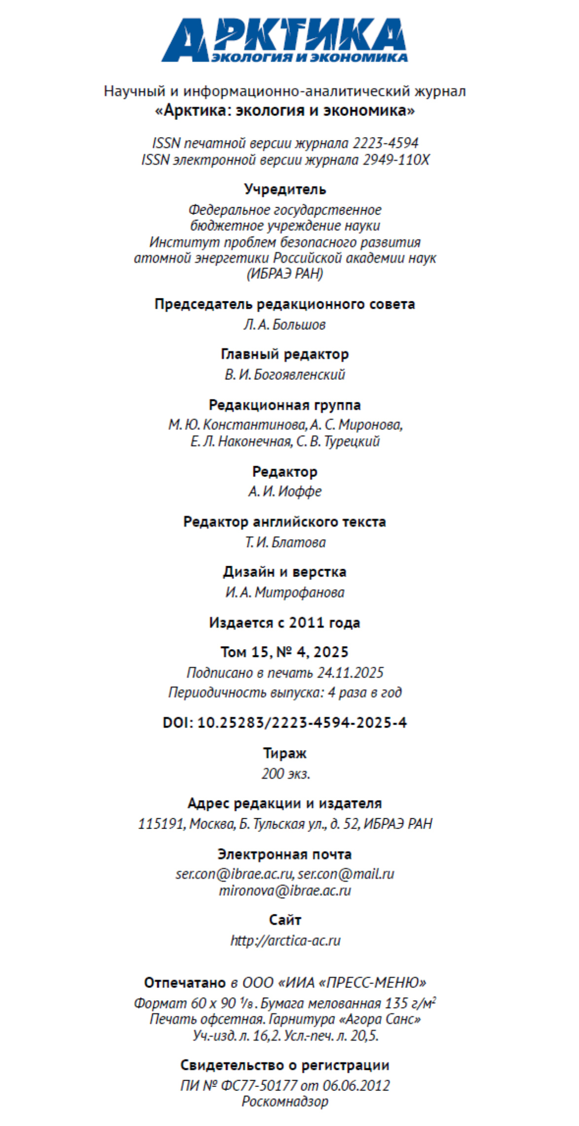 © 2011-2026 Арктика: экология и экономика